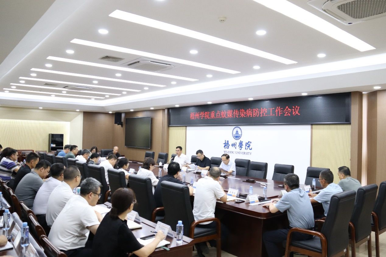 9月7日,学校在明理楼八楼第一会议室召开了重点蚊媒传染病防控工作专题会议。会议由范生汝副校长主持,党委书记童晓晖、党委书记副书记梁业华出席会议,各部门负责人以及各二级学院党委书记参会。